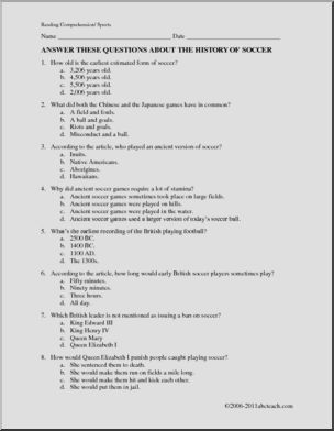 Comprehension: The History of Soccer (upper elementary)