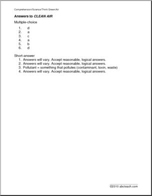 Two page reading comp on the health and environmental risks of air pollution and what individuals can do to prevent it. Multiple choice and short response questions, vocabulary word wall, word search.