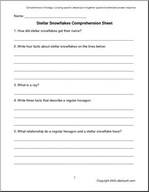 Comprehension: Types of Snowflakes (elem/upper elem)