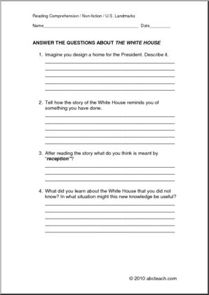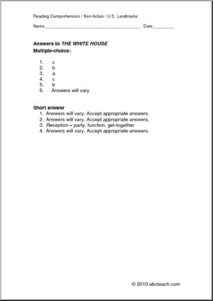 Comprehension: U.S. Landmark – White House (elem/upper elem)