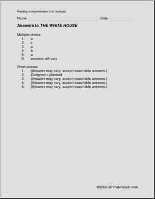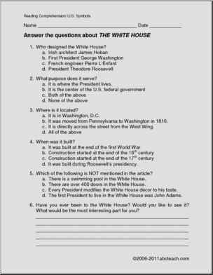 A fact-filled page about the White House, with who-what-where-when questions to evaluate comprehension.