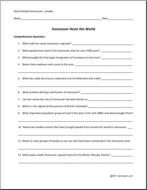 Comprehension: Vancouver Hosts the World (upper elem/middle)