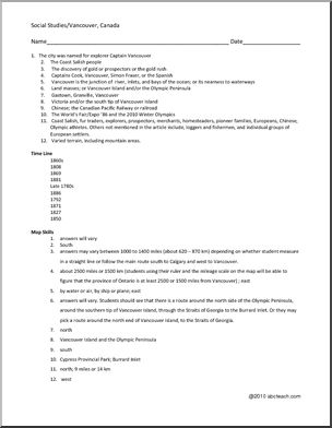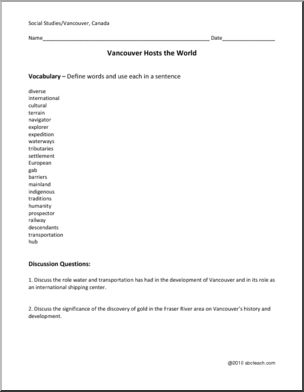 A reading comprehension on the history of the Vancouver area of British Columbia: text, questions, maps, vocabulary, time line. 10 pages