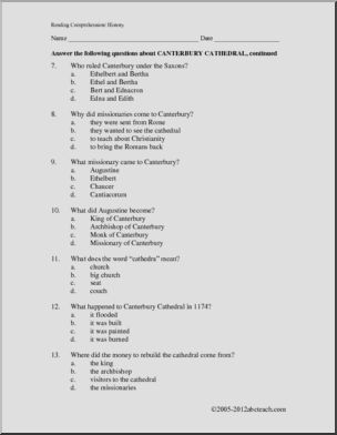 Comprehension: World Landmark – Canterbury Cathedral (upper elementary/ middle)