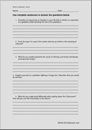 Comprehension: World Landmark – Colosseum (upper/middle)