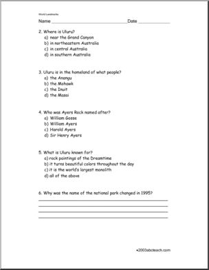 Comprehension: World Landmark – Uluru (Ayers Rock) (upper/middle)
