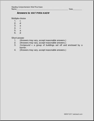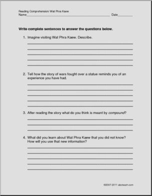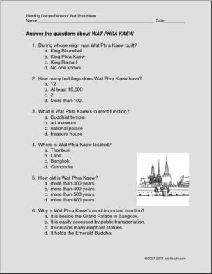 Comprehension: World Landmark – Wat Phra Kaew (elem/upper elem)