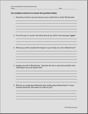 Comprehension: World Landmark – Westminster Abbey (upper elem/middle)