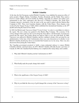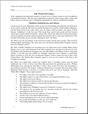 This unit contains six reading comprehensions, and traces Canada’s history by province/territory. Use in conjunction with the other great abcteach Canada materials, including maps and report forms, to get a fantastic and thorough Canada unit started with your students.