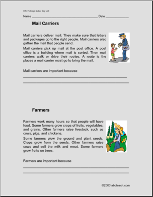 Very short comprehensions about teachers, veterinarians, mail carriers, and farmers