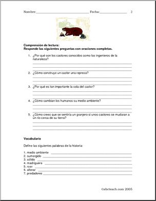 Aprende sobre los castores en esta comprensiÛn de texto. Learn about beavers in this Spanish reading comprehension