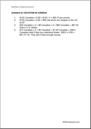 Conversion – Vacation in Canada (upper elem/middle) Word Problems
