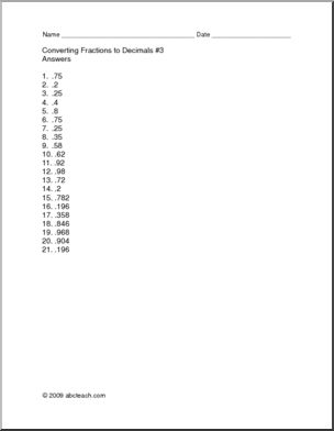 This Convert Fractions to Decimals 3 Worksheet is perfect to practice fraction skills. Your elementary grade students will love this Convert Fractions to Decimals 3 Worksheet. Write each of the decimals as a fraction in simplest terms. Common Core: 6.NS.3