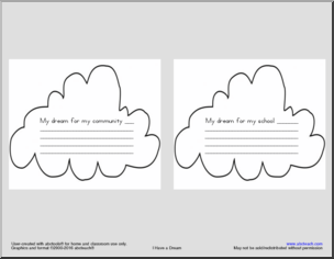 Make a mobile for MLK Day! This activity includes a title page and four writing prompts for students to share their dreams on a cloud mobile. See abcteach blog for instructions on how to make one today!