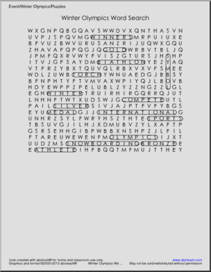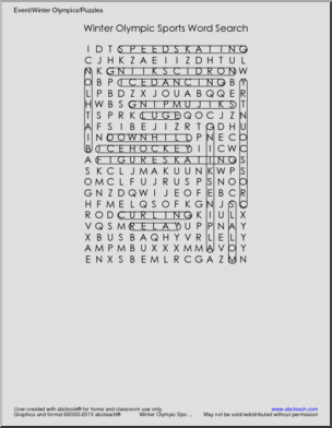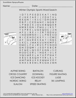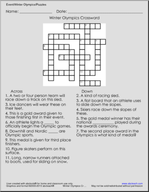 This Winter Olympic themed document features a crossword puzzle and two word searches designed for upper elementary and middle school students. These will provide an interesting way for the students to familiarize themselves with vocabulary related to the winter Olympics.