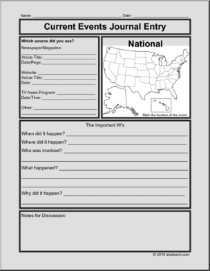 Use this ‘Social Studies: Current Events Journal Entry’ printable worksheet in the classroom or at home. Your students will love this ‘Social Studies: Current Events Journal Entry’. Guided writing for creating a journal entry about a current event. Includes a specific page for each of the following: international, national, state, and local.