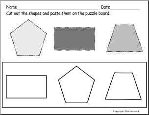 Cut out the three shapes and paste them to the matching shapes on the puzzle board. Five pages.