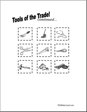 Cut out the tools and match them to the corresponding trades.