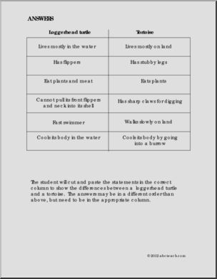 A one page cut and paste activity of sorting characteristics of turtles an tortoises under two headings.