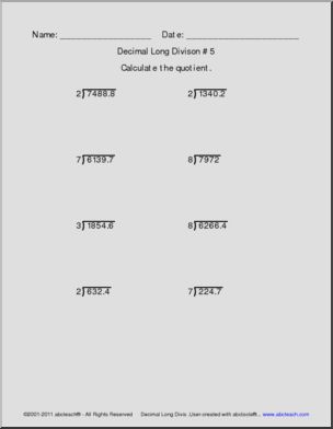 Decimal Long Division Sets 4-6 (elem) Math