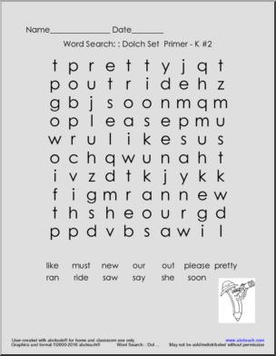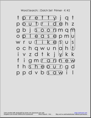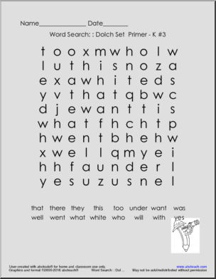 Use this ‘Word Search: Dolch Primer Set (Kdg)’ printable worksheet in the classroom or at home. Your students will love this ‘Word Search: Dolch Primer Set (Kdg)’. Set of three dolch word searches for primer level. Includes answer key.