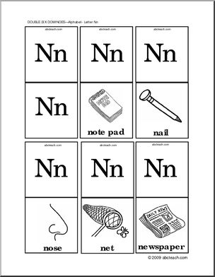 Play any “double six” domino game with these Letter N word/picture dominoes.