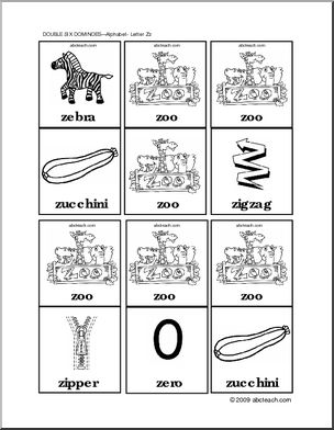 Play any “double six” domino game with these Letter Z word/picture dominoes.