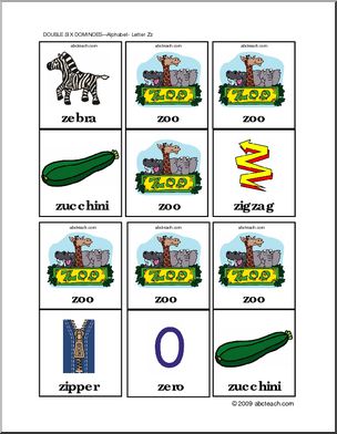 Play any “double six” domino game with these Letter Z word/picture dominoes.