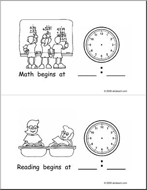 “School begins at _____.” This early reader booklet is great for a lesson on telling time, for helping students understand their schedules, and for the fun of making a personalized book.