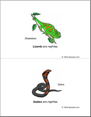“Reptiles lay eggs. The eggs have a hard shell.” This six-page easy reader booklet provides a good introduction to reptiles.