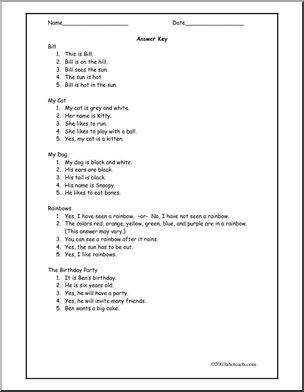 “This is Bill. He is on the hill.” Simplicity reigns in these 5 short selections, with comprehension questions on each page.