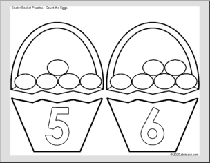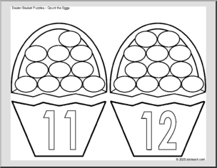 Count the eggs and match the numbers (1-12) on these cute baskets. These black and white outline puzzles are a great Easter-themed activity for students to color, cut, match, and paste.