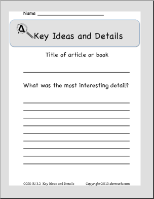 A writing prompt that helps find the main idea and key details with the use of questioning. CCSS. RL.3.2