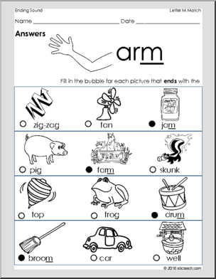 Ending Consonant Sounds: Match – Letter M