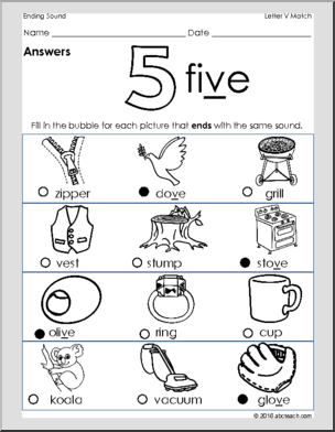 Ending Consonant Sounds: Match – Letter V