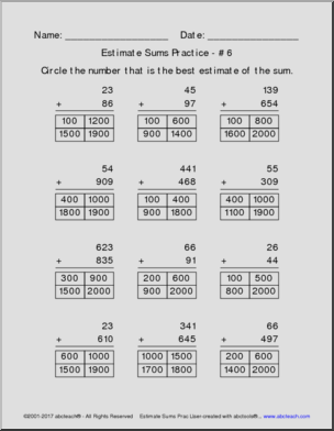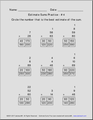 Estimate Sums Practice Pack
