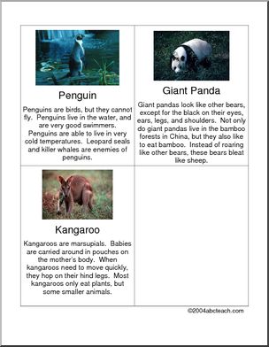 Six pages of facts about zoo animals, illustrated with color photos.