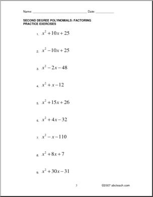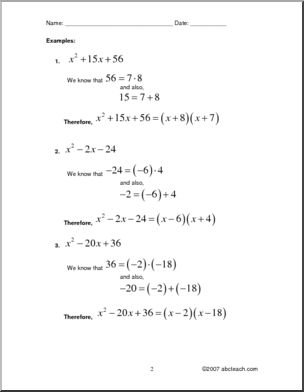 Factoring 2nd Degree Formulas (high school) Rules and Practice