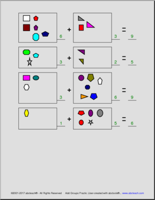 Four pages of Autumn pictures to find the sums and color by number. All sums are under 20.