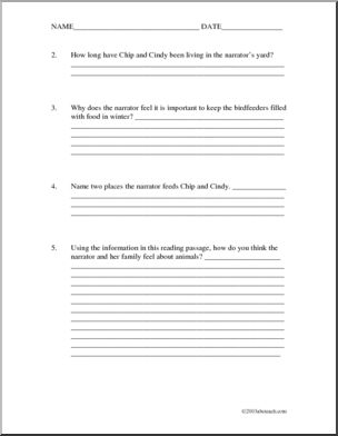 “Chip and Cindy are cardinals.” A fictional reading comprehension about the birds in a child’s yard.