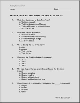 Jasper and his family take a summer vacation to NYC, where they will see Jasper’s obsession, the Brooklyn Bridge. But will Jasper be so obsessed with something else that he misses the Bridge? Includes multiple choice and short answer questions and a writing prompt.
