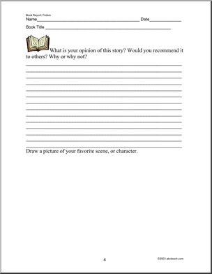 Use this ‘Book Report: Fiction (elementary)’ printable worksheet in the classroom or at home. Your students will love this ‘Book Report: Fiction (elementary)’. A simple book report form to help elementary students organize their thoughts and evaluate a work of fiction. The prompts explain character, setting, etc.