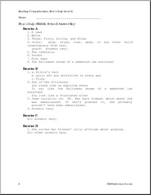 Our fictional tale of a girl with a gulping habit is available at four different levels, with increasingly advanced vocabulary and activities. The middle school level includes reading comprehension and inference questions and exercises in understanding appropriate for middle school readers.