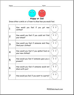 Students read a happy/sad story, then show how they would feel in various situation. A good introduction for a “feelings” lesson.