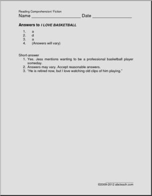 “I love the rhythm of the ball bouncing when I dribble.” Realistic fiction followed by multiple choice questions.