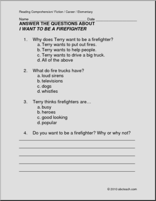 A 1 page realistic fiction selection, followed by 3 multiple choice questions, and 4 short answer essays.