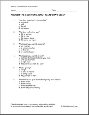 A one page realistic fictional selection about a young boy who wonders about gravity; this reading comprehension activity is followed by 6 multiple choice questions and four questions that require short written responses. It works alone or with Level 2, unit 10 spelling.