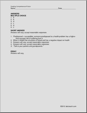 Jacob and his twin sister learn about the importance of family health history. Includes a set of short response and a set of multiple choice questions, plus a writing prompt that will help student make a plan for heart health in their family.