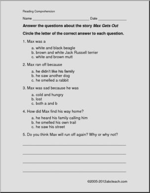 A realistic fiction reading comprehension about a dog who goes on an adventure… and gets lost.