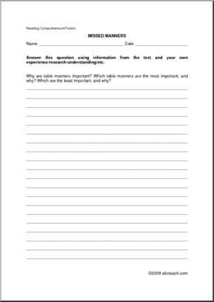 Fiction: Missed Manners (upper elem/middle)
